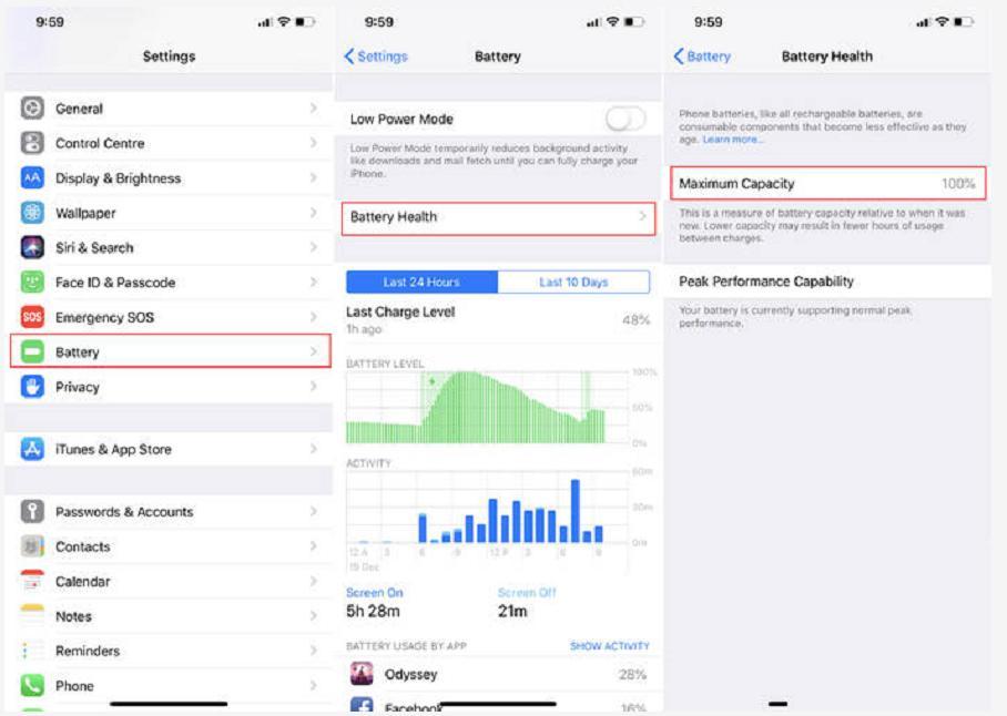 iOS 14 系统为我们检查电池使用情况提供了便利。当您转到设置>>电池>>电池健康时,您可以在此处查看有关电池寿命的所有详细信息。您可以查看电池容量百分比、应用程序的日常使用活动等。通过检查电池使用活动,您将更好地了解哪个应用程序消耗的电池最多,以及电池耗尽最多的时间段。通过检查 iPhone 电池使用的详细信息,您可以采取措施重新排列 iPhone 上的应用程序。