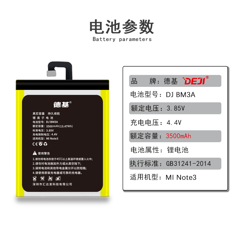 • 德基小米note3手机电池