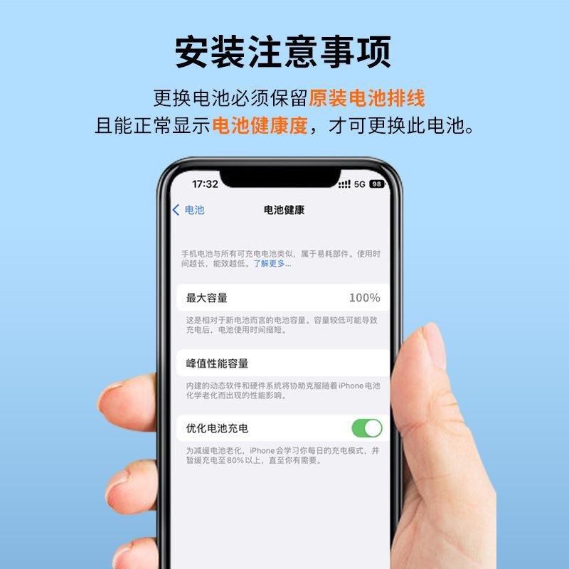 • 厂家定制批发可显示健康度的iPhone电池、大容量和标准容量苹果手机电池、三星手机电池、小米手机电池等,详情请咨询客服。
