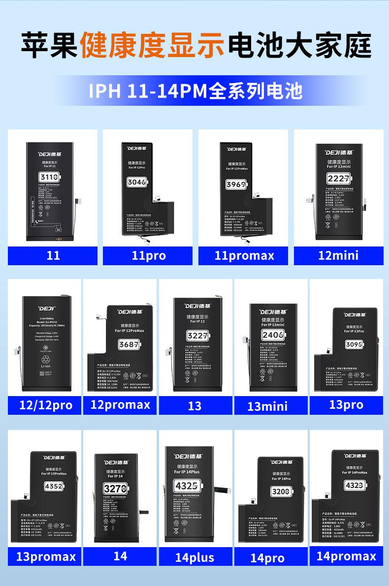 • 厂家定制批发可显示健康度的iPhone电池、大容量和标准容量苹果手机电池、三星手机电池、小米手机电池等,详情请咨询客服。