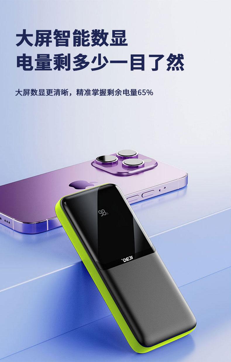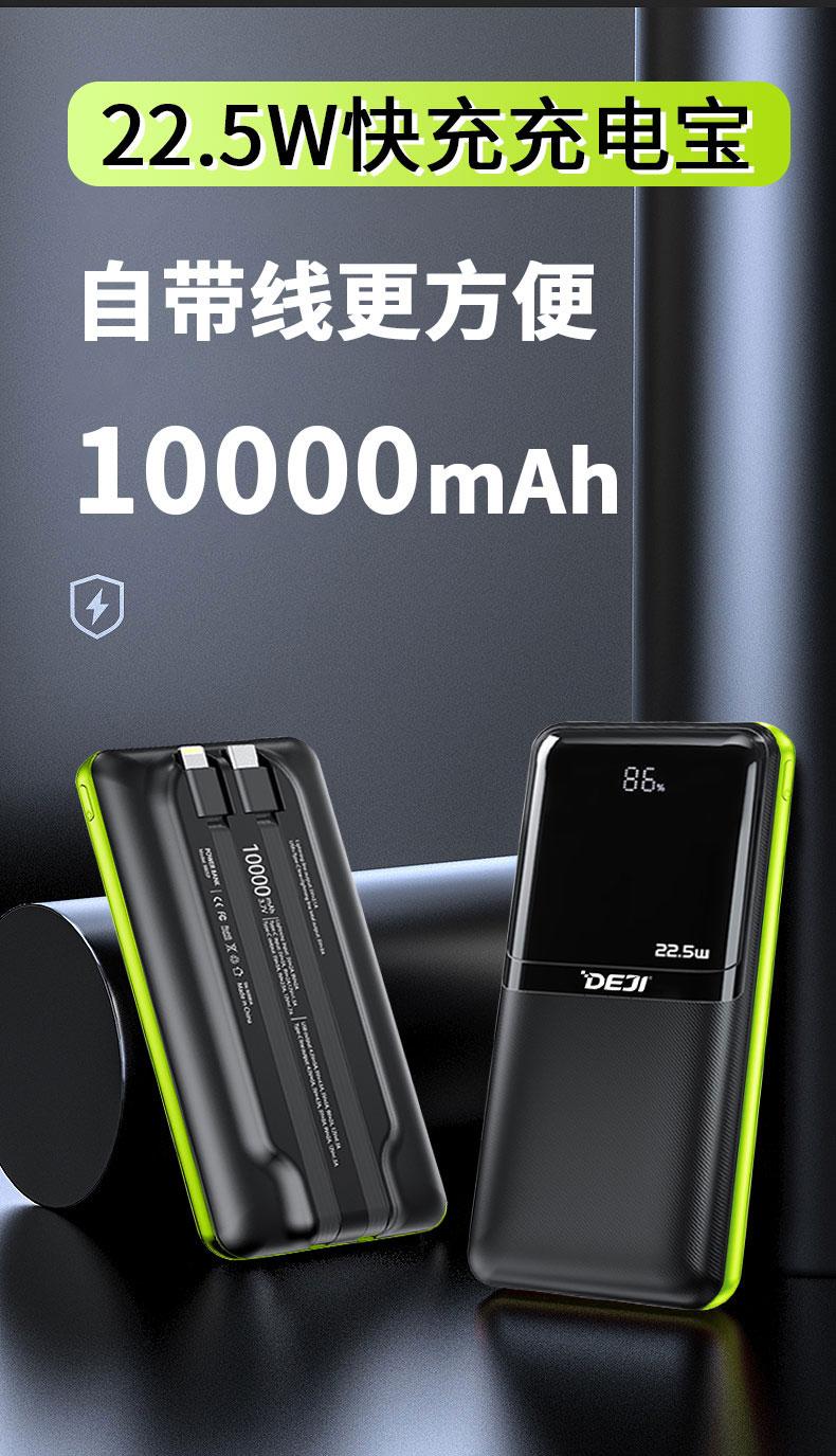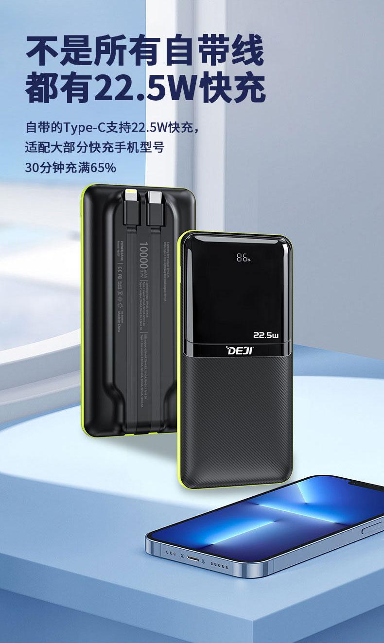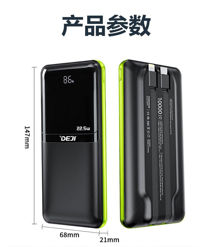 德基新款10000mAh快充充电宝,厂家直销数显自带线PD快充移动电源
