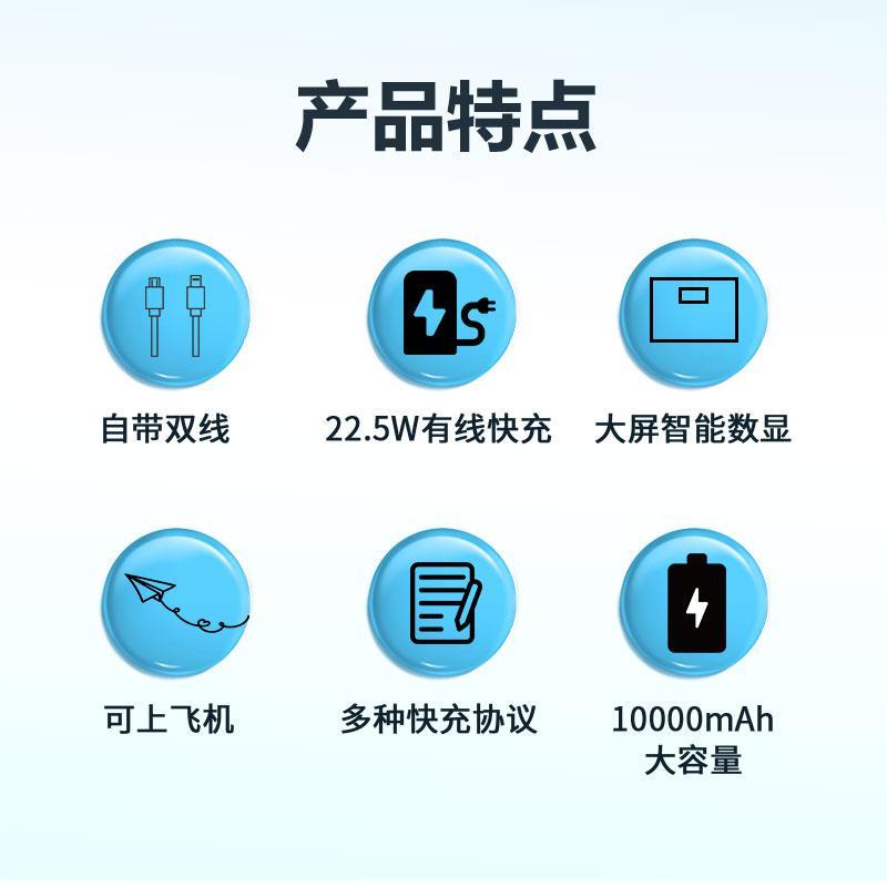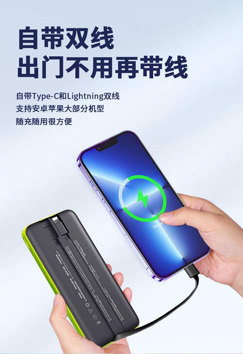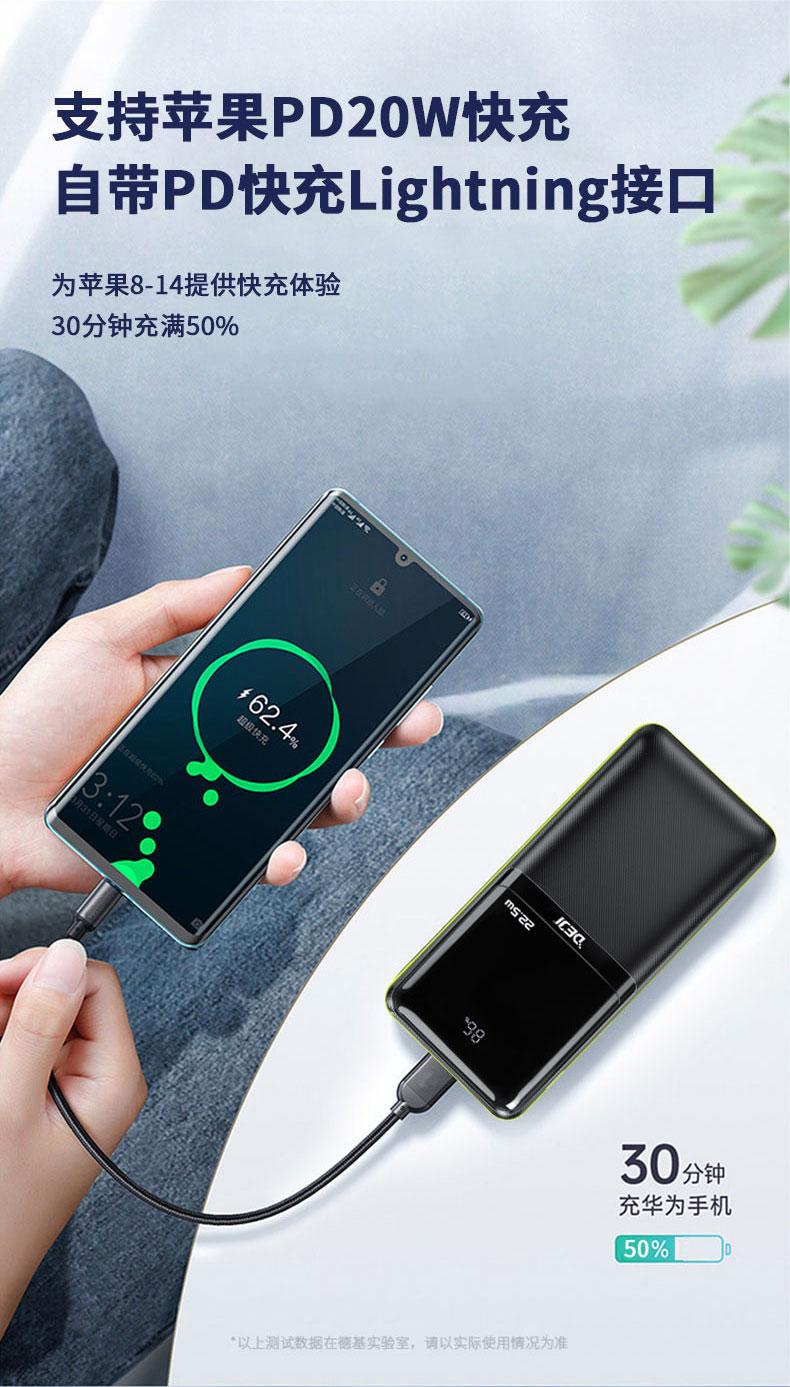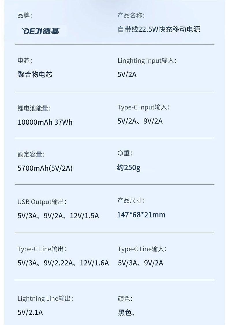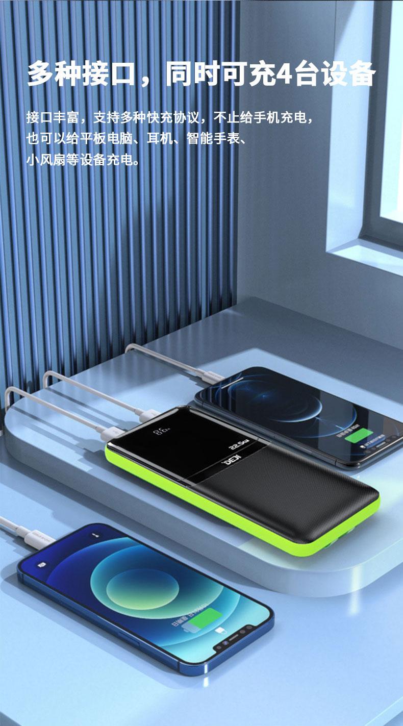 德基新款10000mAh快充充电宝,厂家直销数显自带线PD快充移动电源