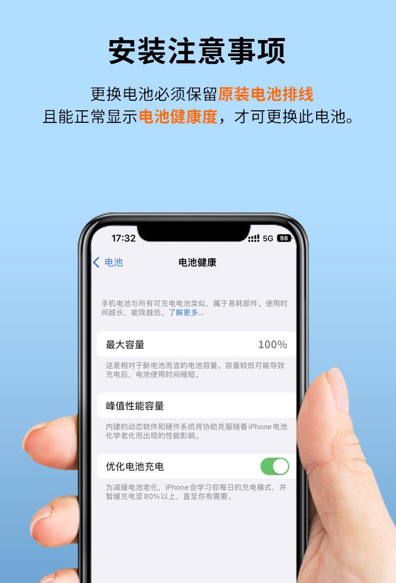• 厂家定制批发可显示健康度的iPhone电池、大容量和标准容量苹果手机电池、三星手机电池、小米手机电池等,详情请咨询客服。